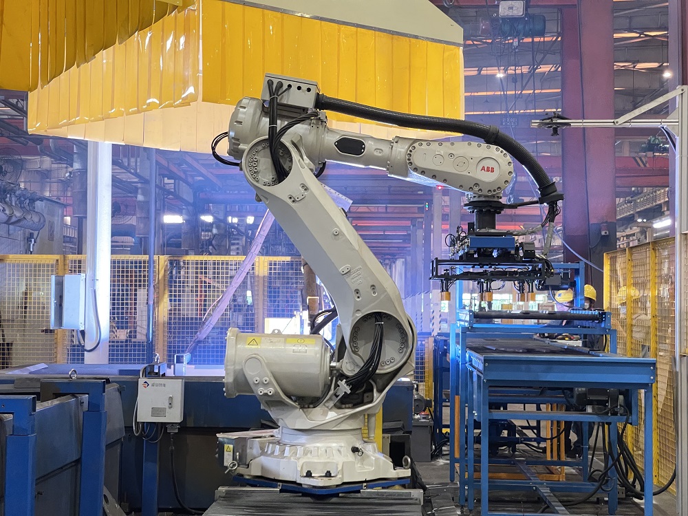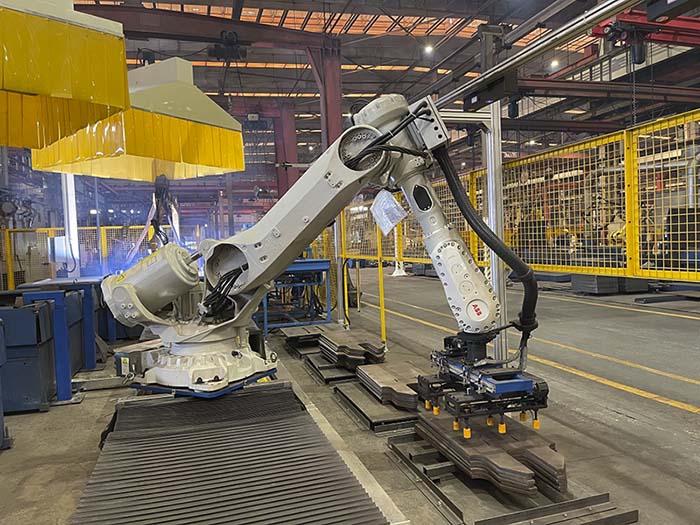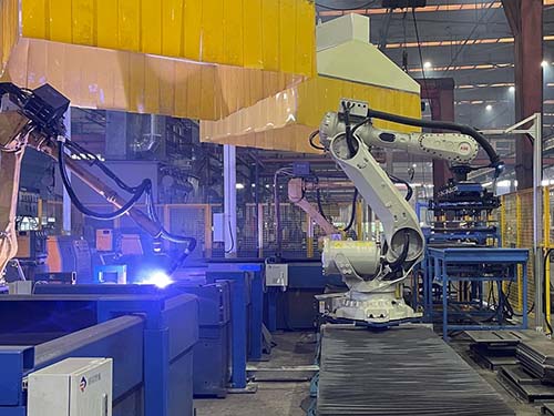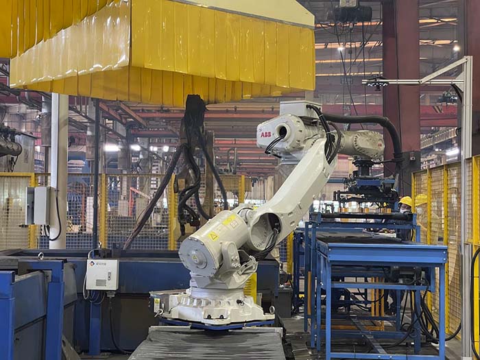 坡口加工是厚鋼板焊接中一個(gè)重要的步驟,在傳統(tǒng)的工作流程中,工人將重量大的鋼板由小型龍門吊機(jī)抓取,放入激光切割機(jī)工作的指定位置。該工作費(fèi)時(shí)費(fèi)力,且存在安全隱患,同時(shí)對(duì)工人熟練度要求高,否則因擺放位置偏差造成的加工不合格會(huì)大大影響后續(xù)焊接。